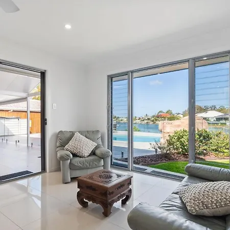 La villa Spacious Waterfront House With Pool Maroochydore cuenta con una piscina privada adultos y se encuentra en una zona residencial de Maroochydore, a unos 2 km de la Playa Cotton Tree.
